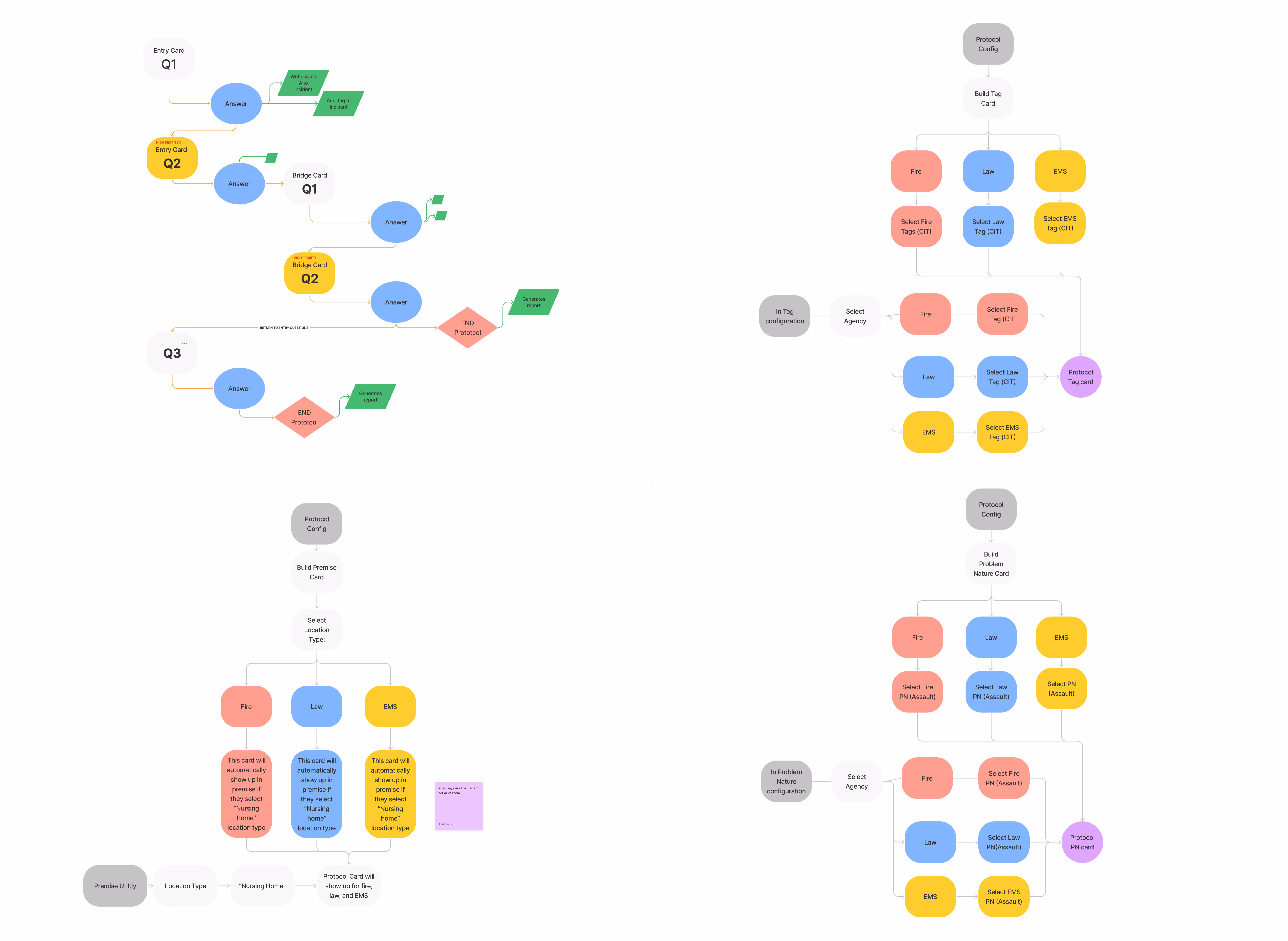 What looked like a logical branching structure in documentation became overwhelming in real emergency scenarios. Call takers had to navigate multiple paths while managing distressed callers, increasing cognitive load at critical moments.